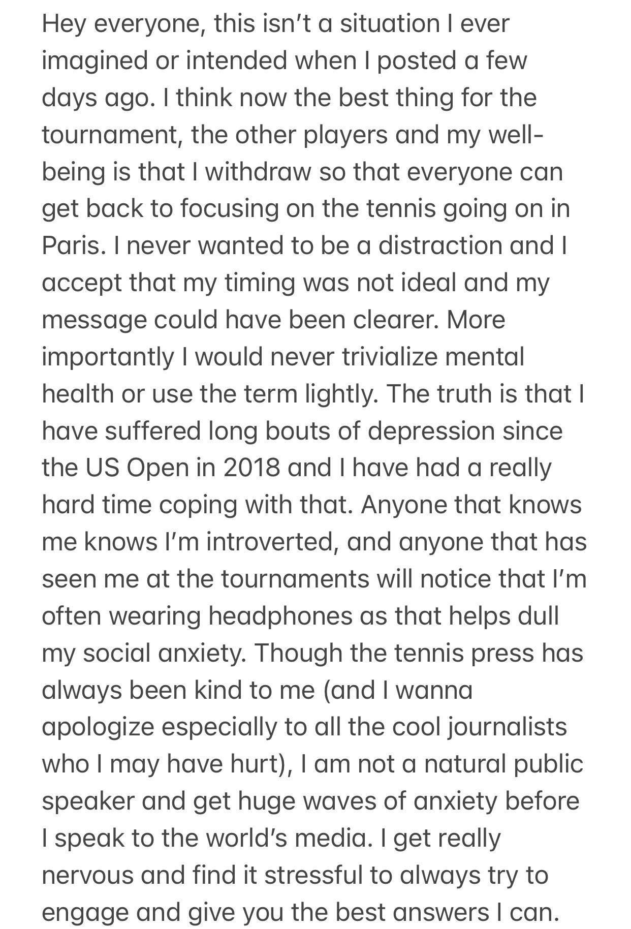 In general, and definitely with Osaka in person, it all boils down to communication, or apparent lack thereof on her part, AND her willing choices made in all of this.